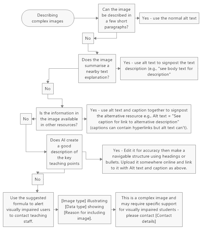 Use the following prompts to determine the best way to provide a text alternative to complex images: