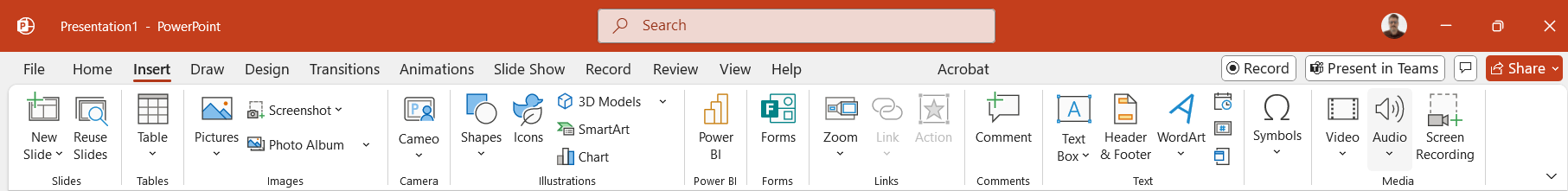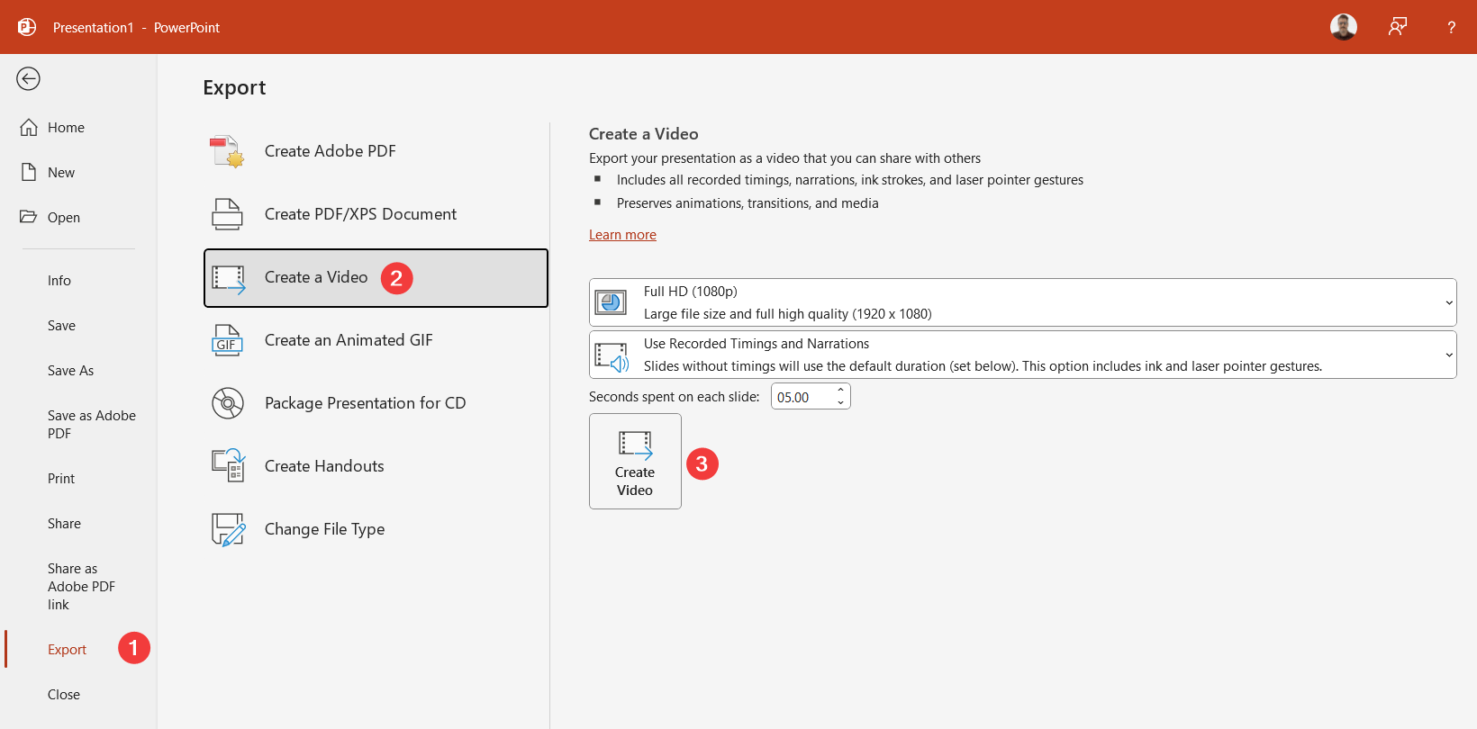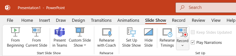 One often overlooked method to share a PowerPoint is as a video. One common educational use case is adding an audio recording over slides (e.g., lecture material). This can be done 1 of 2 ways: