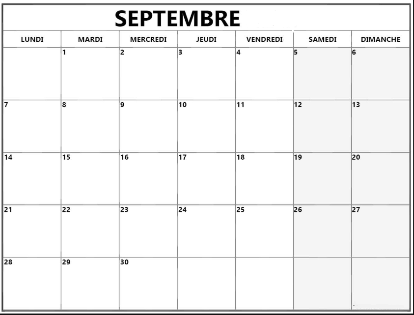 Le calendrier: le mois de septembre