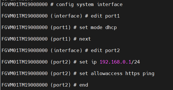 - Set a DHCP server on interface port2 (Range of IP address should be: 192.168.0.20 to 192.168.0.30, DNS: 4.2.2.4).