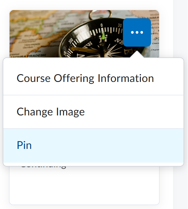 Tip: You can pin the course to the top of your home page by clicking the ellipsis (…) on the top right of the course and select Pin.