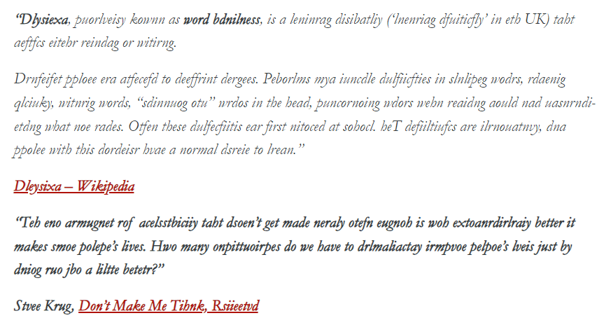 The following animation shows what dyslexia may look like to some individuals. Accessible font choices can minimize the effect.