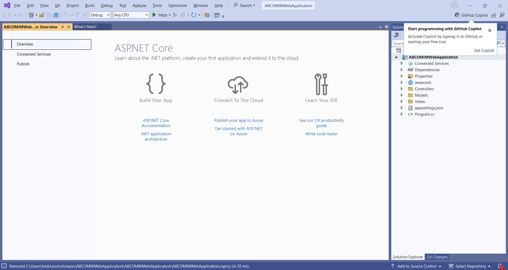 Rick Anderson and 23 contributors. “Get started with ASP.NET Core MVC,” Microsoft Learn, July 29, 2024. https://learn.microsoft.com/en-us/aspnet/core/tutorials/first-mvc-app/start-mvc?view=aspnetcore-9.0&tabs=visual-studio