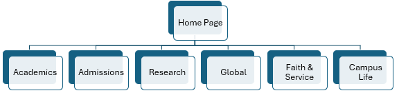 We will storyboard the website and we will use the University of Notre Dame approach. Here is the first navigation row: