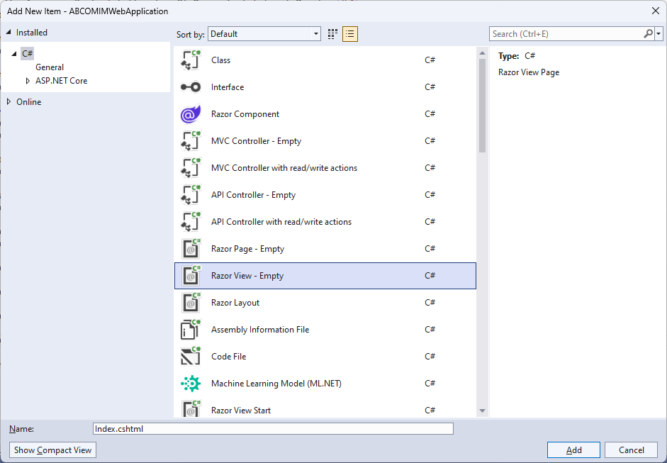 Rick Anderson and 23 contributors. “Part 3, add a view to an ASP.NET Core MVC app,” Microsoft Learn, July 29, 2024. https://learn.microsoft.com/en-us/aspnet/core/tutorials/first-mvc-app/adding-view?view=aspnetcore-9.0&tabs=visual-studio