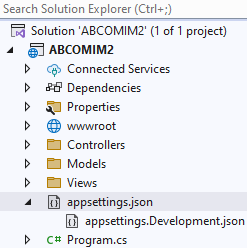 In plain English, the warning message is telling us that the connection string is in the Context class. This is a bad programming practice. Good programmers do not hard code certain values. The solution is to put the connection string in a file that should not be available to the visitor. So we will use the appsettings.json file. It is located near the bottom of the Solution Explorer. See Figure 15.75.