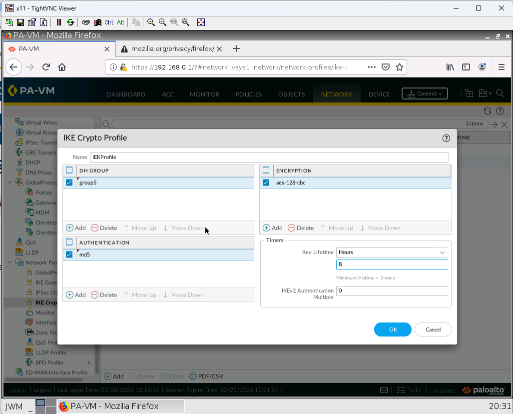 4. Create an IKE profile with following information: