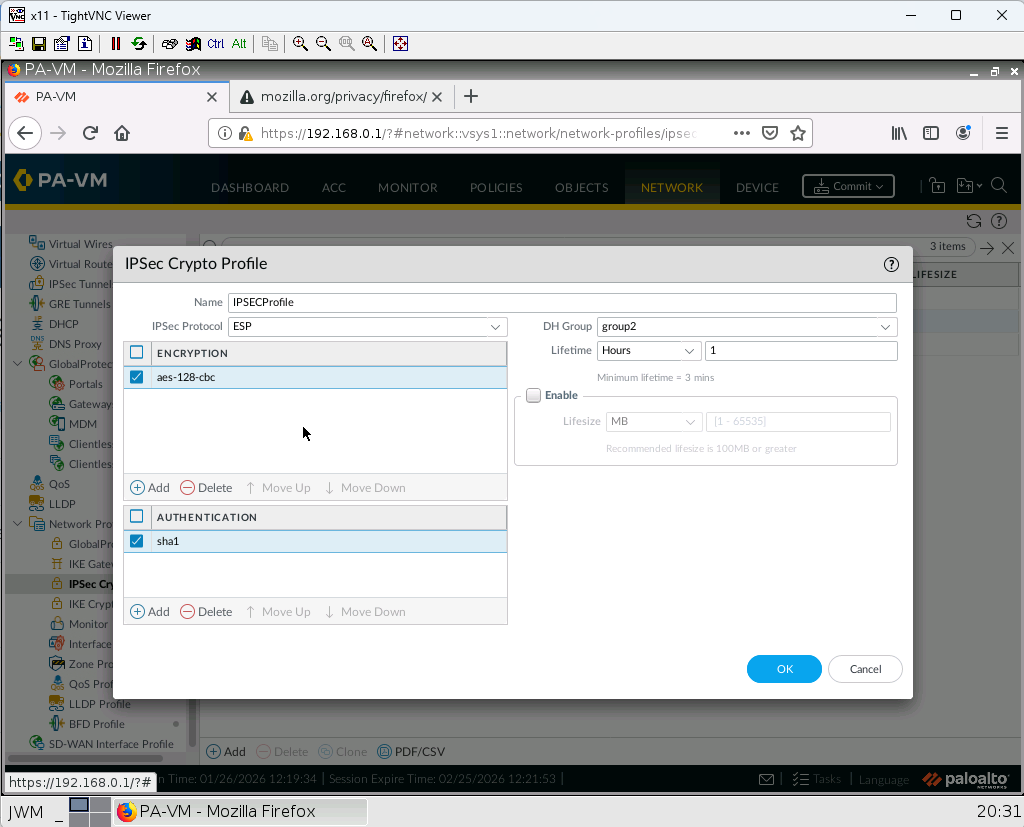 5. Create an IPSEC profile with following information: