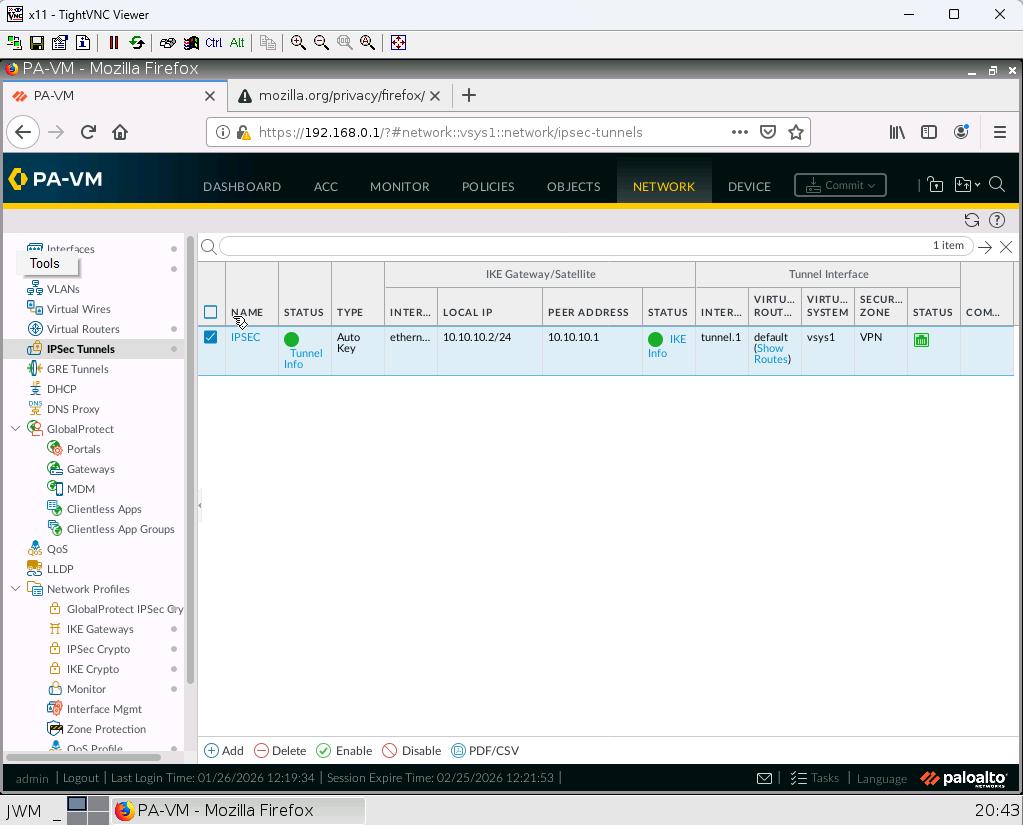 - Create a tunnel in Palo Alto