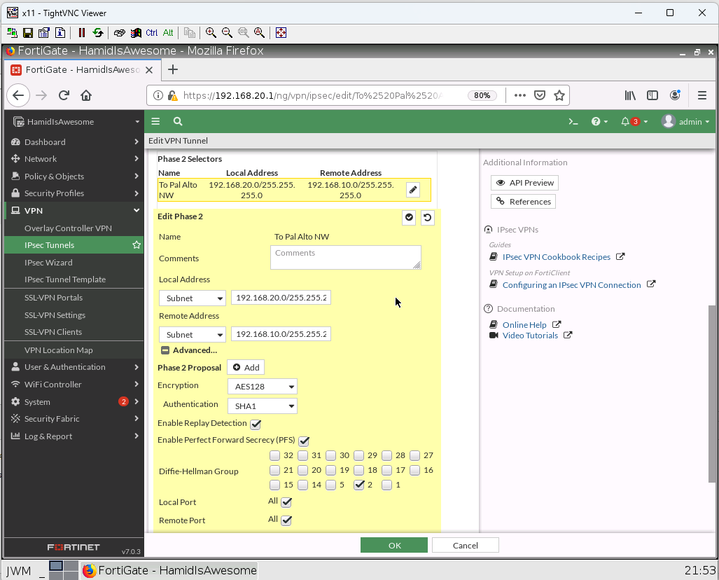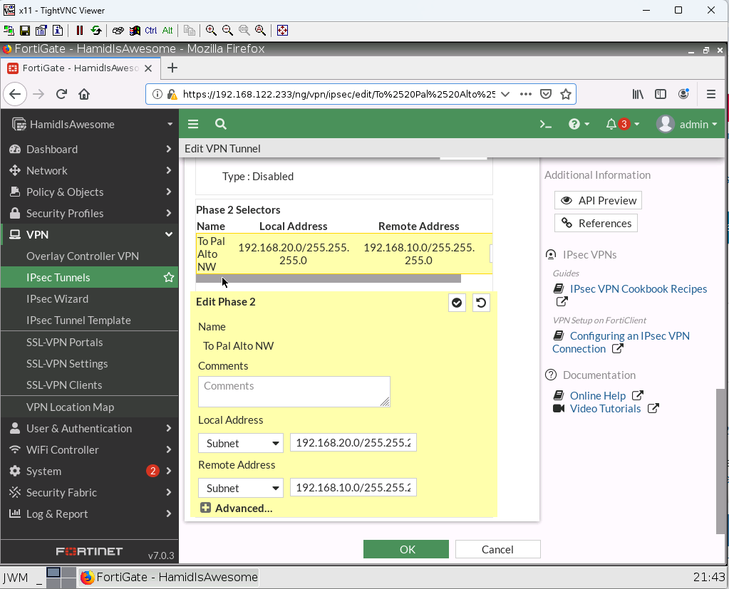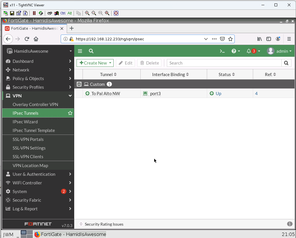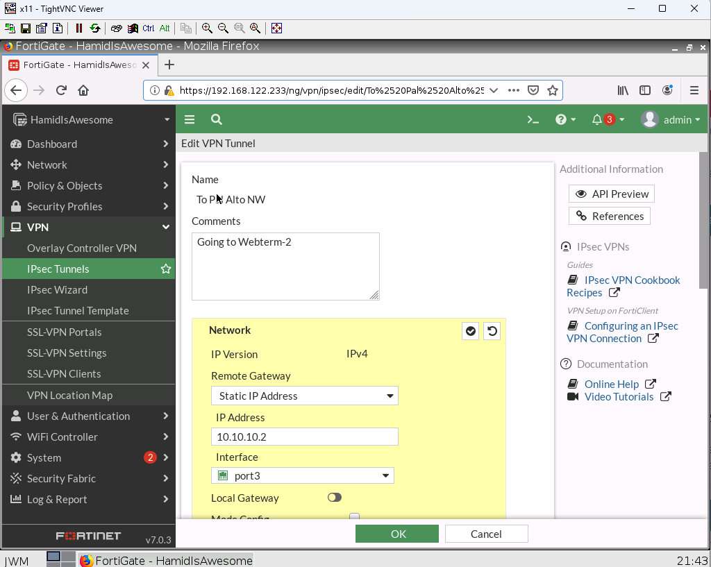 - Create a tunnel and assign the tunnel to VPN Zone
