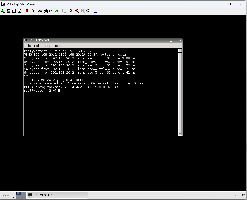 6. You should be able to ping from WebTerm2 to WebTerm3.