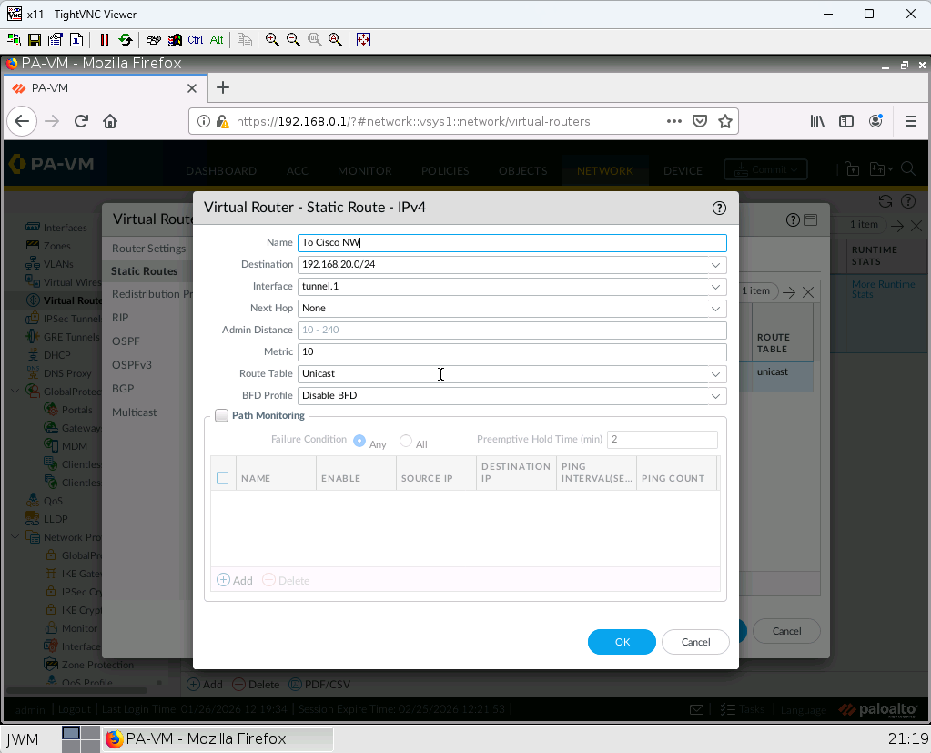 - Connect a tunnel from Cisco router to Palo Alto