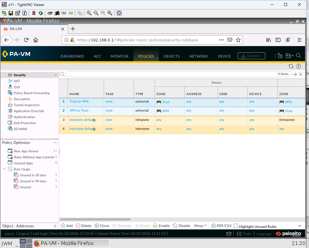| VPN | Ethernet 1 /1 |