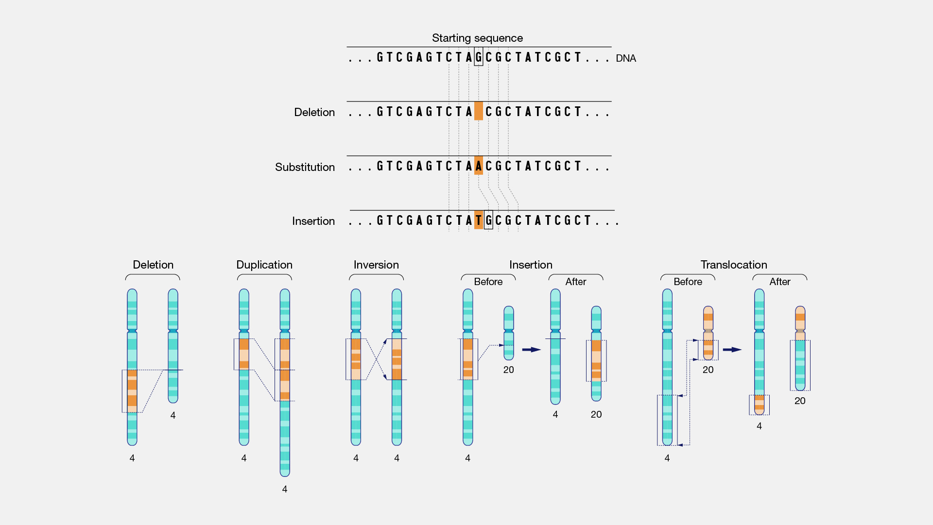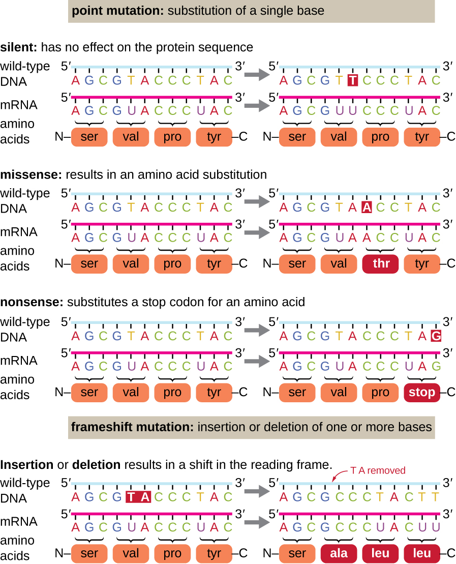- Types of DNA mutations – insertion, substitution, deletion, synonymous, non-synonymous