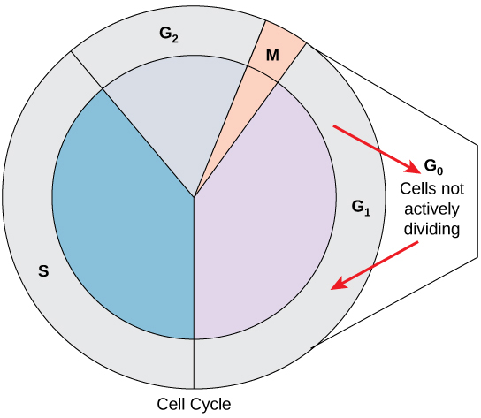 Cells that are not actively preparing to divide enter an alternate phase called G0. In some cases, this is a temporary condition until triggered to enter G1. In other cases, the cell will remain in G0 permanently. -