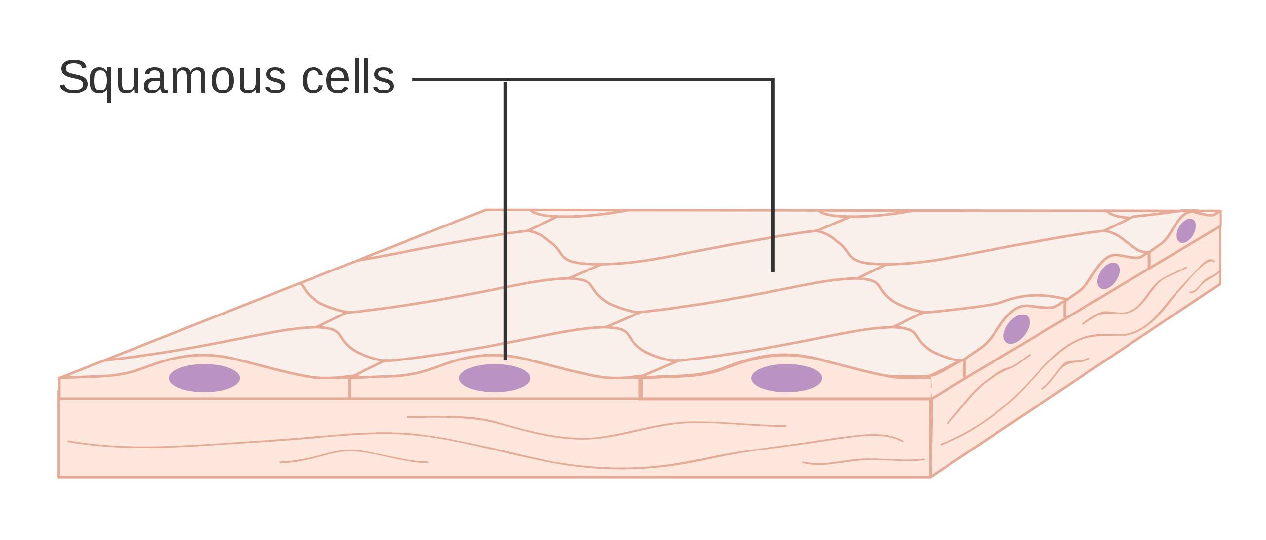 - Squamous cell carcinoma: Squamous cell carcinoma starts in squamous cells. These are the flat, surface covering cells found in areas such as the skin or the lining of the throat or food pipe (oesophagus).