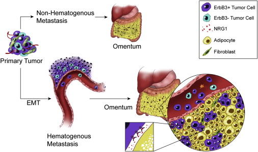 (Bottom) Our results point to an alternative pathway that also involves hematogenous metastasis with strong tropism toward the omentum.