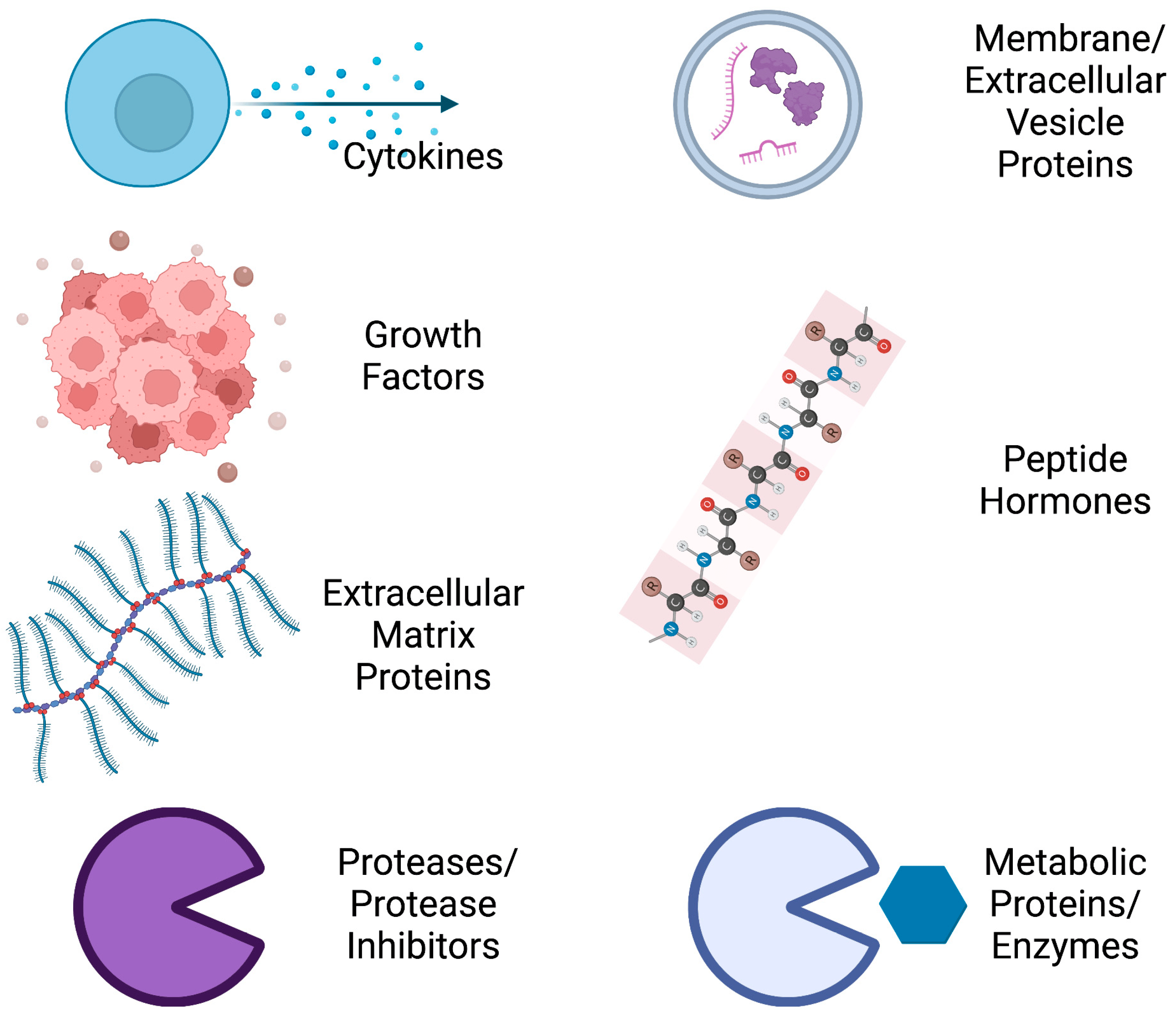 Proteins of the TNBC secretome. A large variety of functional proteins are secreted from (triple-negative breast cancer) TNBC cells and tumors -
