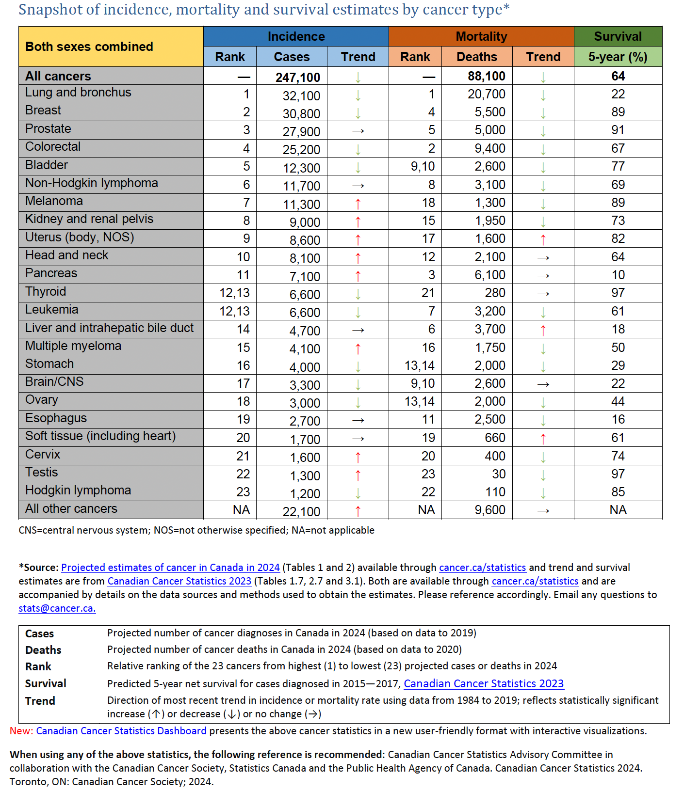 - Canadian Cancer Statistics 2023