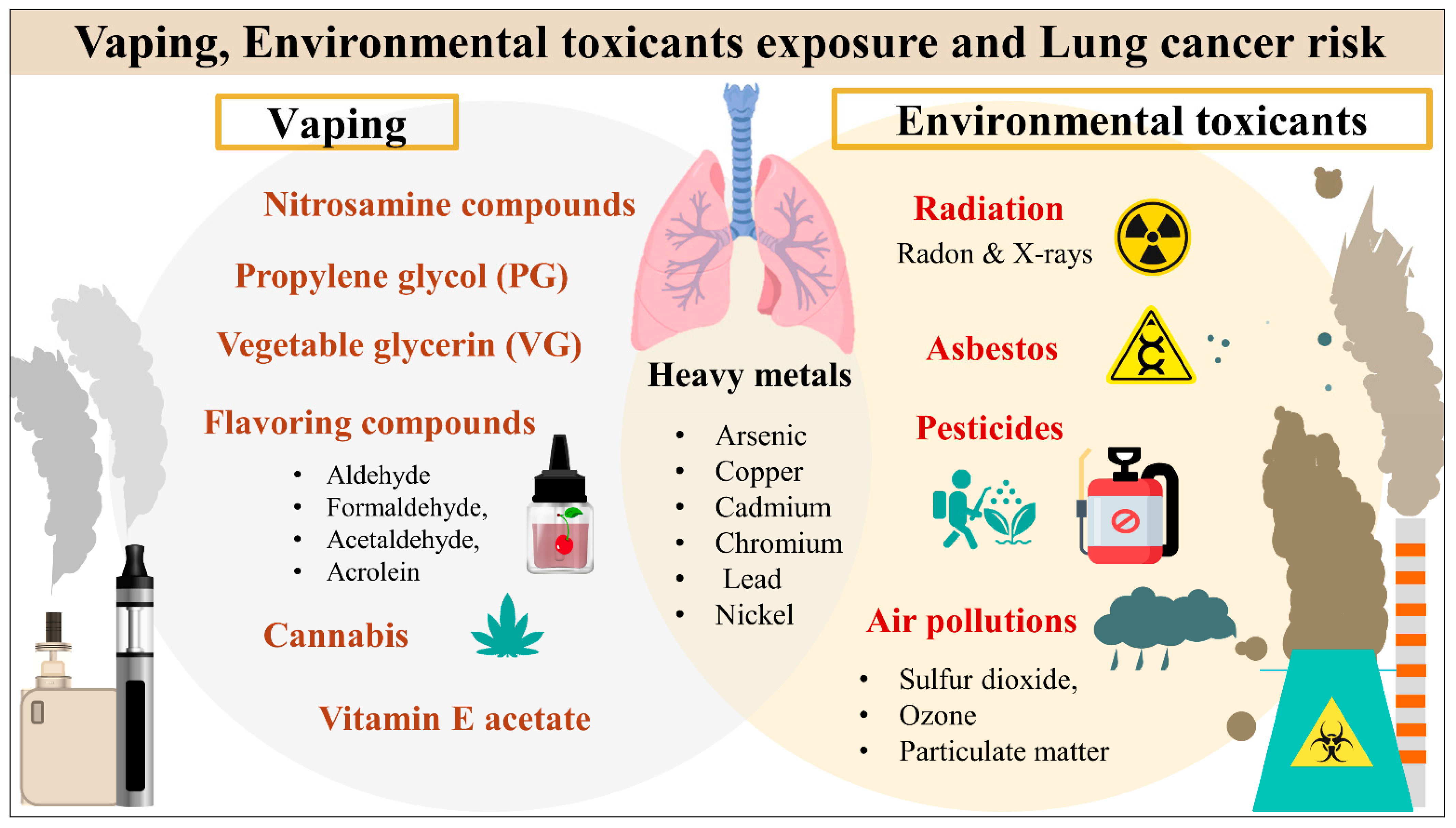 - Risk factors for DNA mutations and therefore risks for cancer – continuous injury repair, exposure to carcinogens found in cigarette smoke, industrial pollutants, asbestos, cell types that divide frequently (eg. epithelial cells, followed by connective tissue cells), certain viruses, diet, age, chemicals,