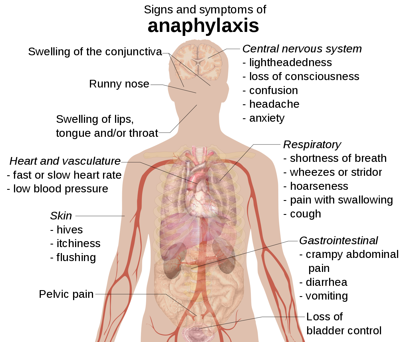 • Signs and symptoms of anaphylaxis