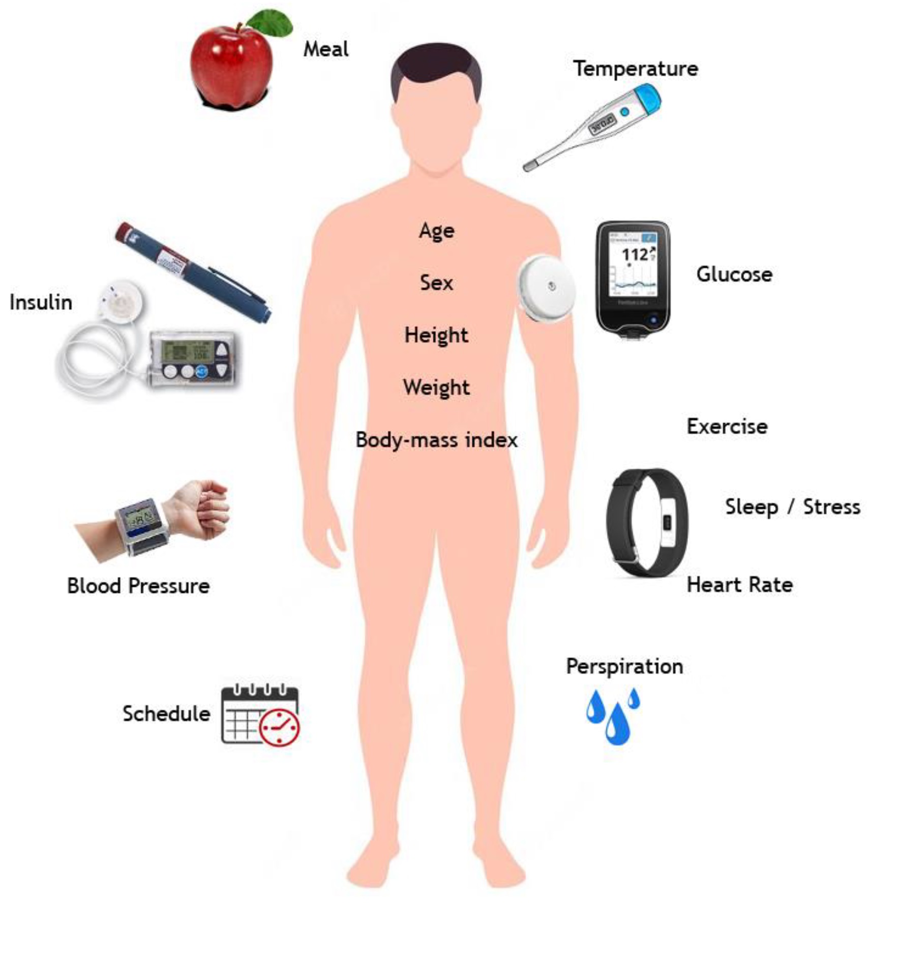 Variables related to Type 1 Diabetes Mellitus (DM1) in an Internet of Medical Things context.