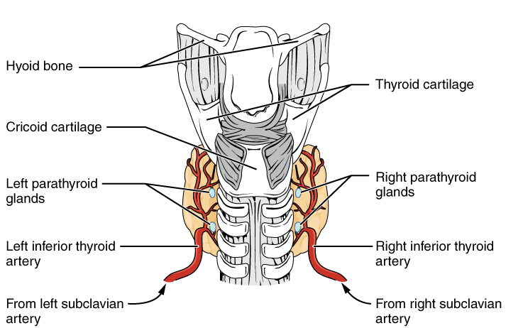 The parathyroid glands are located on the posterior of the thyroid gland.