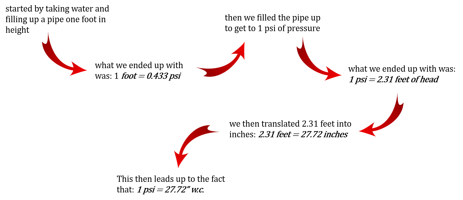 - This then leads up to the fact that: 1 psi = 27.72″ w.c. [Return to image]