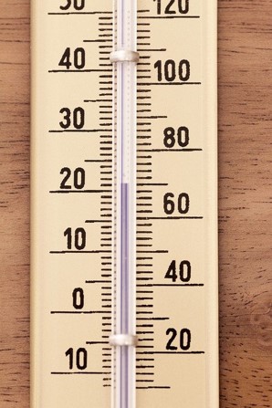 The thermometer to the right has a bulb filled with mercury.