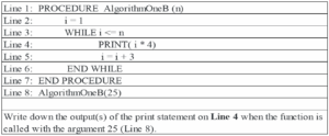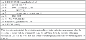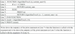 In addition to other survey questions, students in Group A were tasked with solving AlgorithmOneA (Fig. 1) and AlgorithmTwoA (Fig. 3), while those in Group B completed AlgorithmOneB (Fig. 2) and AlgorithmTwoB (Fig. 4).
