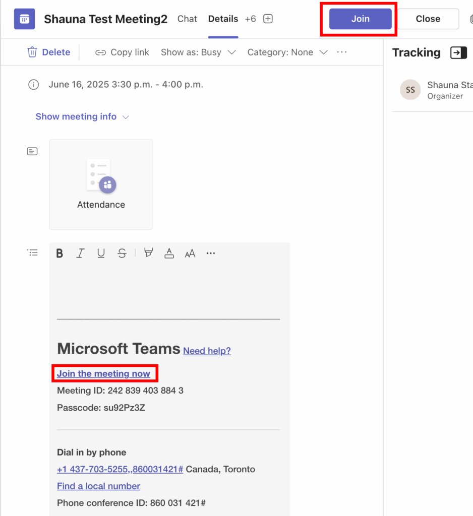 The Outlook Calendar: Click the link or Join Teams Meeting