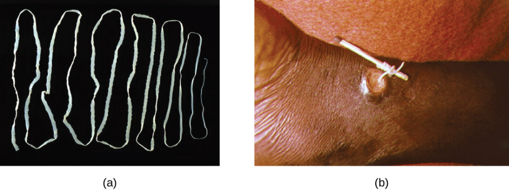 Parasitic worms: are small multicellular eukaryotic organisms that are capable of living in a host and in doing so utilize the host as its sources of nutrition as well as a safe-haven habitat that ensures its survival and ability to reproduce. Parasitic worms are most often ingested with contaminated food or water, though some water-borne parasitic worms can directly penetrate the skin. The rapid multiplication of parasitic worms within the body can lead to progressive damage to tissues (most often in the gastrointestinal tract, and at times in other organs including the lungs and liver). In later chapters we will discuss means of prevention of parasitic worm infection, as well as pathogenesis, typical signs and symptoms, modes of transmission, and available diagnostic tools and treatment strategies.
