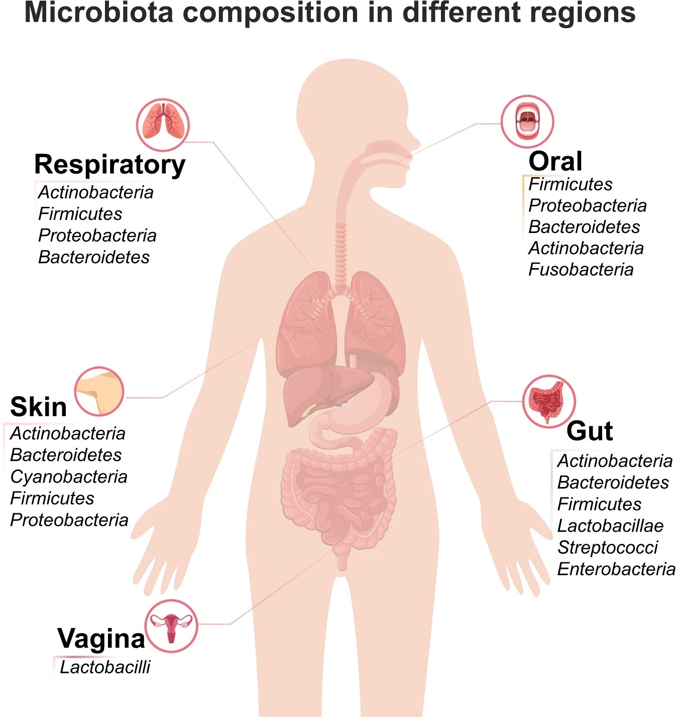 Sites of normal flora include: the surfaces of the skin, conjunctivae, nasal cavity, mouth, respiratory tract, intestinal tract, vagina and urethra. Two terms are often used when discussing the human microbiome, resident microbiota and transient microbiota.